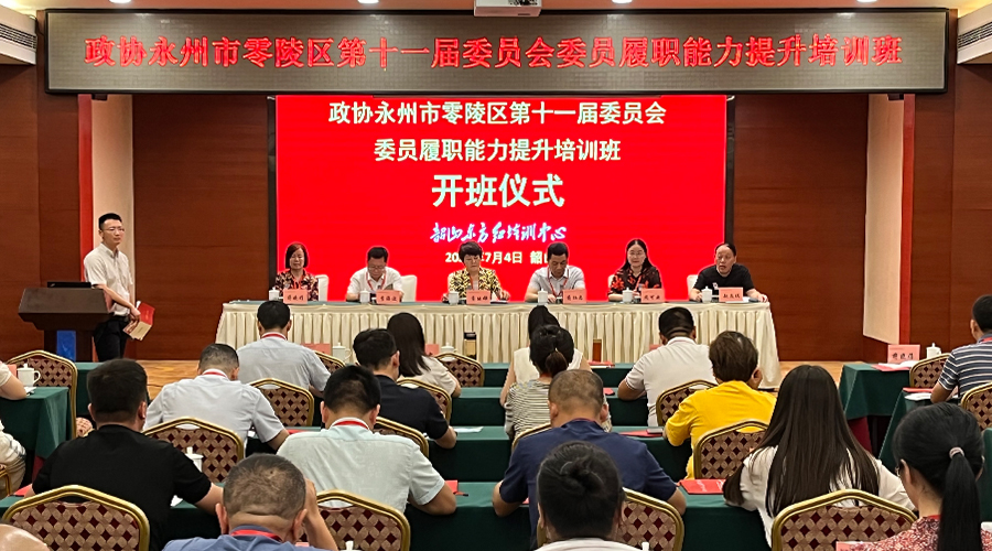 7月4日,政协永州市零陵区第十一届委员会委员履职能力提升培训班暨政协云书院第二期委员读书活动在湖南省韶山东方红培训中心启动。零陵区政协主席蒋映群作学习动员讲话。韶山东方红培训中心督学赵远琪出席并致辞。零陵区政协副主席蒋炳忠、李海波、周可云,区政协常委,各乡镇街道宣统委员,区政协各专委员兼职副主任和兼职委员、各委员工作室负责人及部分机关工作人员参训。