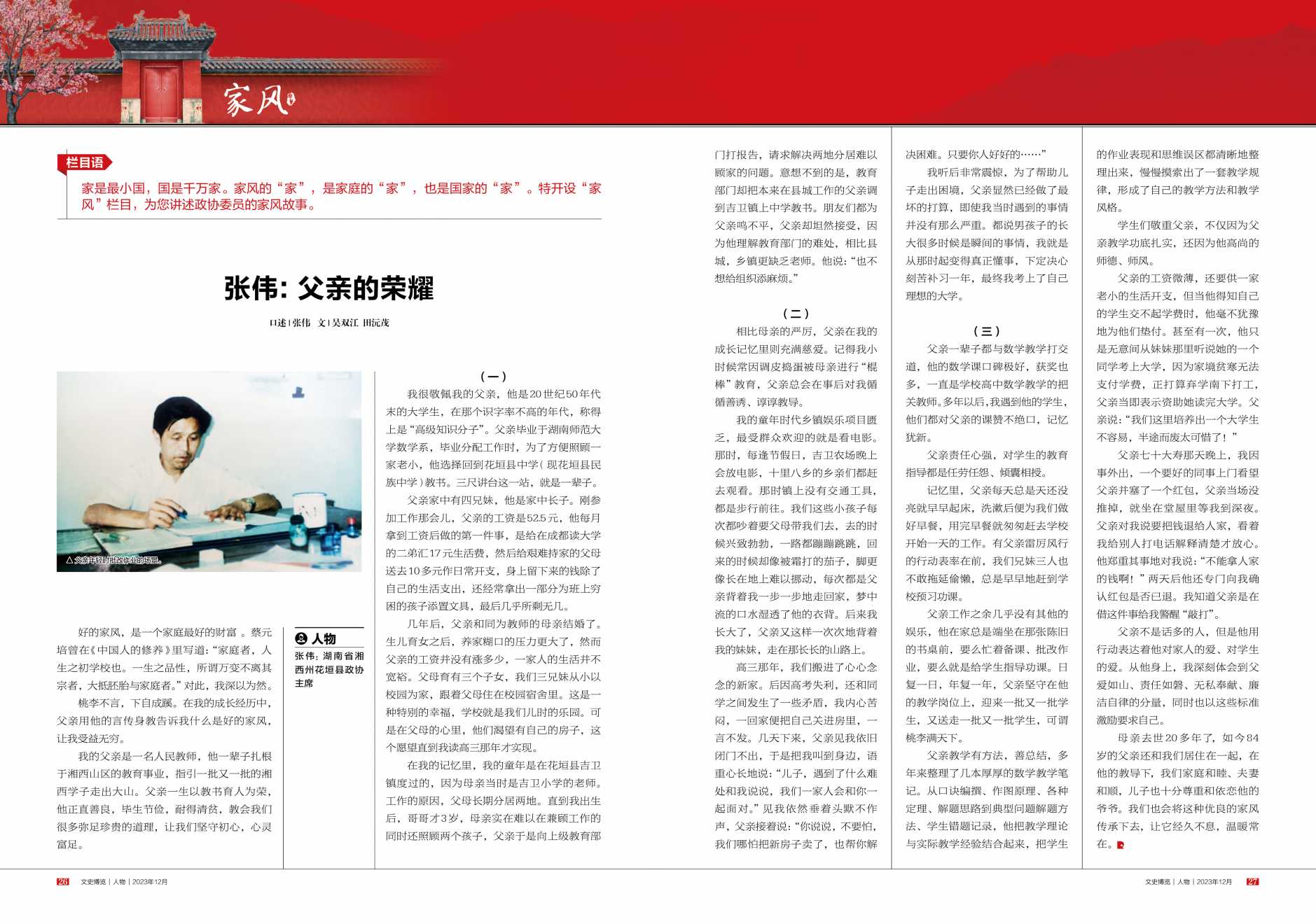 《文史博览·人物》2023年第12期《张伟:父亲的荣耀》