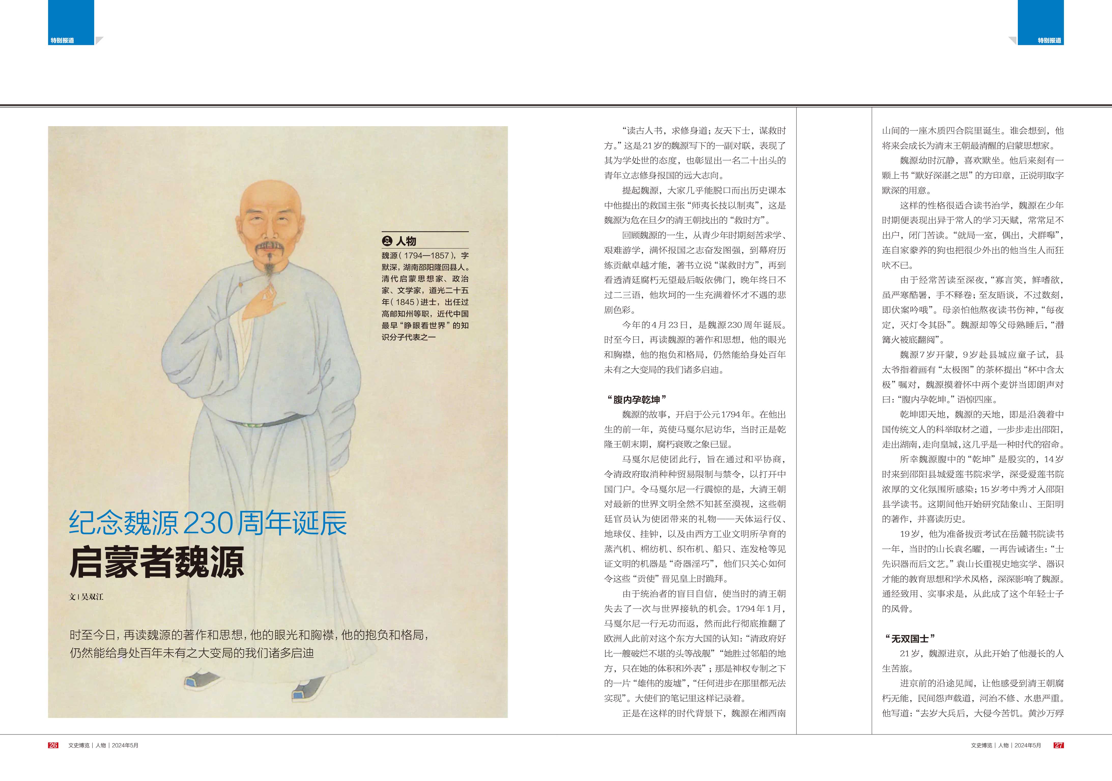 《文史博览·人物》2024年第5期 《启蒙者魏源——纪念魏源 230周年诞辰》