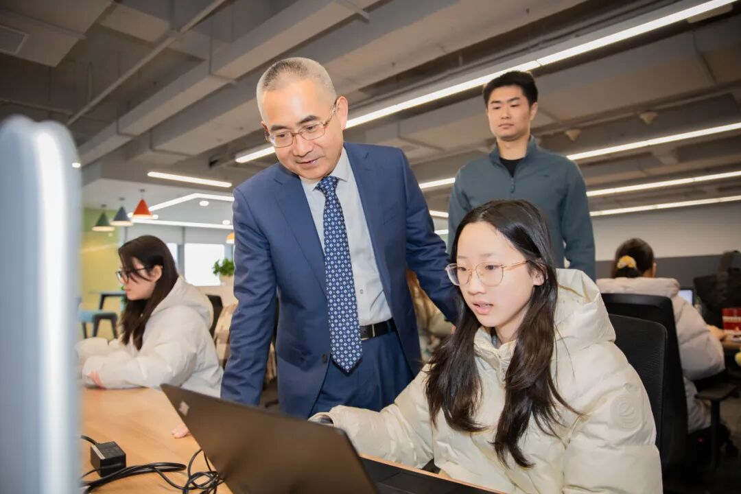 刘智清与同事沟通交流工作。