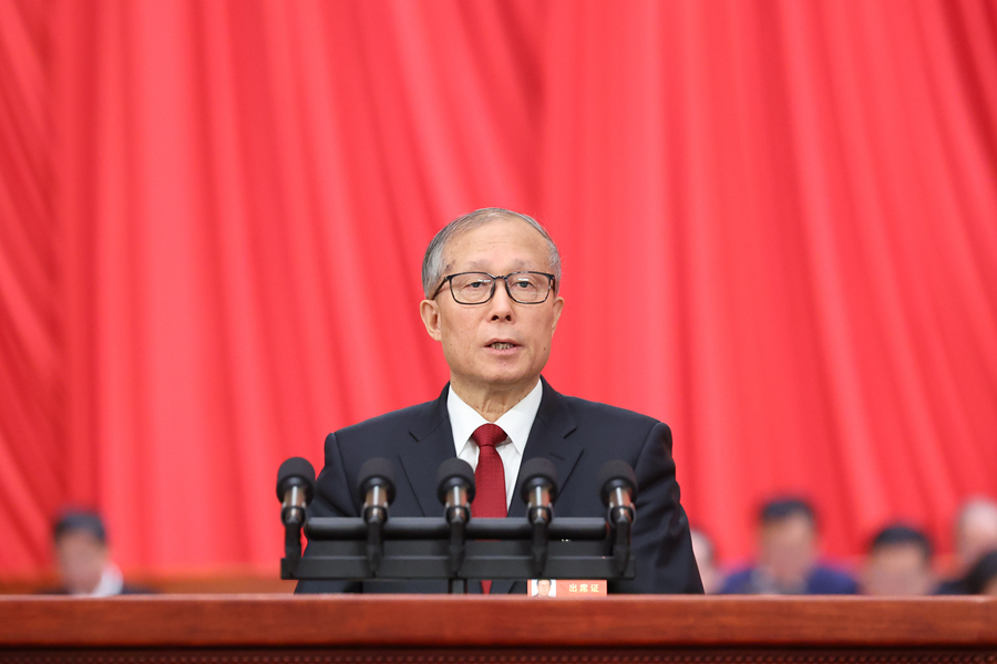 3月5日,第十四届全国人民代表大会第二次会议在北京人民大会堂开幕。受全国人大常委会委托,全国人大常委会副委员长李鸿忠作关于国务院组织法修订草案的说明。新华社记者 刘卫兵 摄