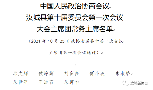 10月25日,县政协十届一次会议召开大会主席团第一次会议。会议由邱文辉同志主持。市委派驻汝城县“两会”现场督导组到场指导。会议协商通过了政协汝城县十届一次会议日程(草案);协商通过了大会主席团常务主席名单(草案)、大会各次会议执行主席及主持人名单(草案);协商通过了大会副秘书长、大会秘书处各工作机构及负责人名单(草案);协商通过了十届县政协委员活动组分组安排和正副组长名单(草案);邱文辉同志对政协汝城县第十届委员会候选人提名人选进行了谈心谈话。