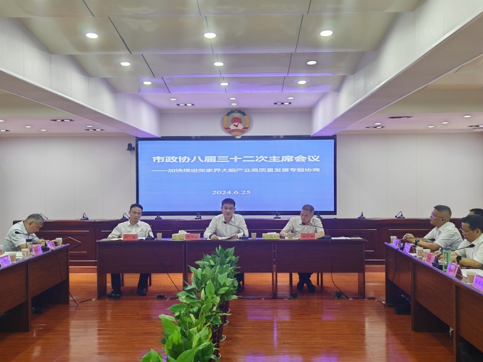 6月25日,市政协八届三十二次主席会议召开,会议专题协商了加快推进张家界大鲵产业高质量发展,市委副书记、市委政法委书记曾若冰,市政协党组书记、主席杨广林,市委常委、副市长万东,市政协副主席李立、王光明、陈叶峰、杨余茂、汤敬波、陈艳静、姚媛贞及秘书长潘远忠参加会议。