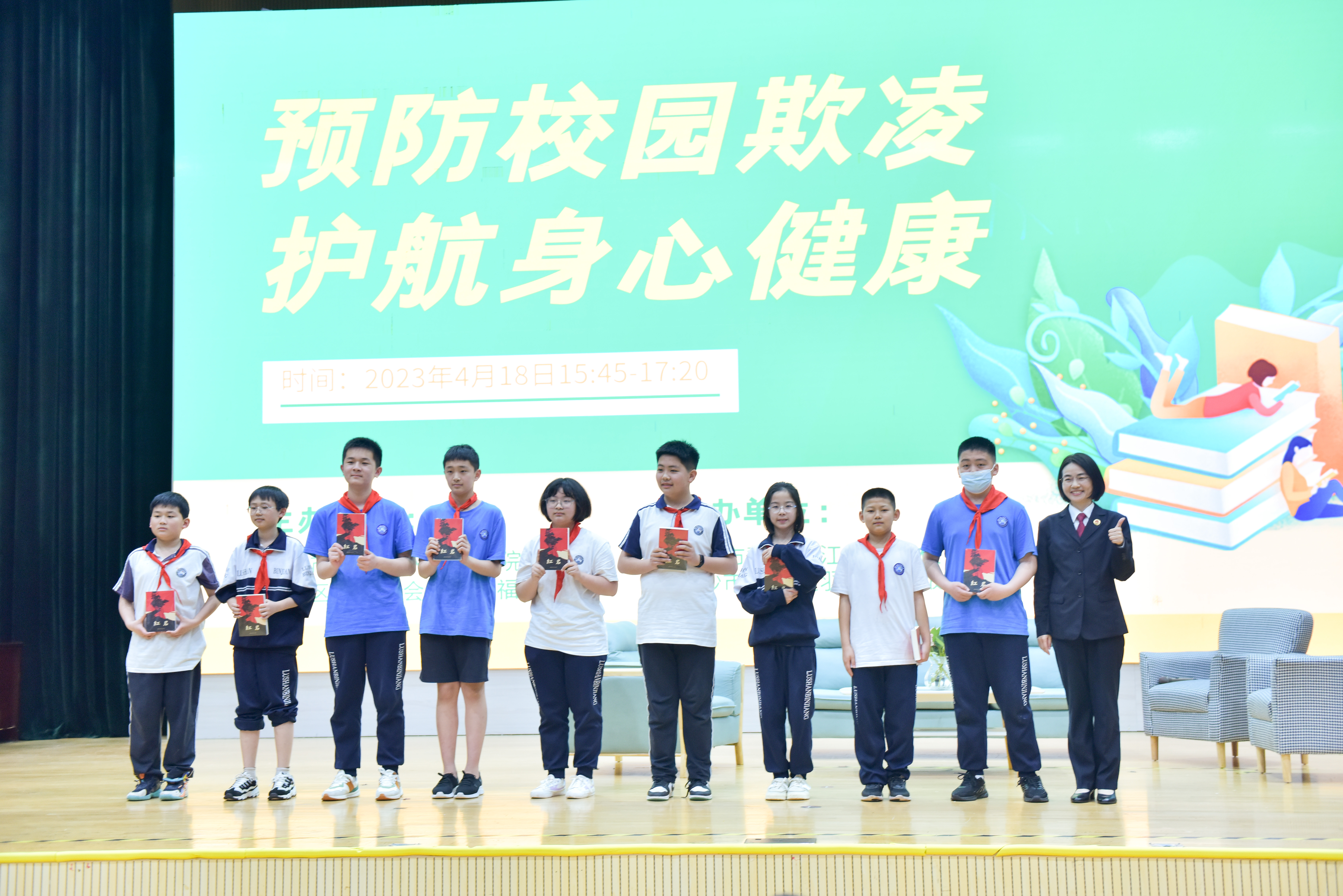 为进一步提升青少年自我防护意识和能力、关爱青少年心理健康,4月18日下午,区政协社会保障和社会福利界别联合岳麓区人民检察院、岳麓区羽翼心理等相关单位,以“预防校园欺凌,护航身心健康”为主题,进入麓山滨江实验学校开展“五送”民生志愿服务活动,为全校1000余名师生及线上直播间观众带来直观生动的法治、心理教育。