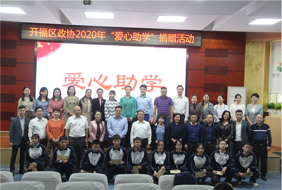 为贯彻落实省政协部署的“双助双行动”,9月30日下午,开福区政协2020年“爱心助学”捐赠活动在开福区新竹二小举行。区政协党组书记、主席熊建伟,党组副书记、副主席杨艳,副主席廖耀群、林永红、鲁碧君,秘书长于文韬,区政协办公室主任谭栋、专委会主任田承明、周庆辉、贺滟、肖铁华,区政协委员王凤、成娟、罗靓、吴芳兰、陈敏、杨方、夏德仁、骆金龙、刘平、肖亮、程志辉、肖欢、林玲、王心亮、范伟君、雷晓芳、康洁、龚耀武、冯忠、寻惠、徐江文等参加了本次活动。