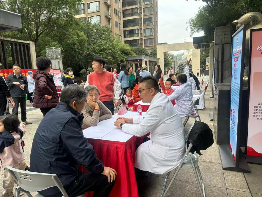 在义诊现场,“一老一小”健康区最为热闹。开福区政协委员、湖南中医药大学第二附属医院主任医师江建锋的诊位前排起长队,他正专注地为一位老年人把脉,细致询问慢性病史,用中医经典方药为患者提供诊疗方案。