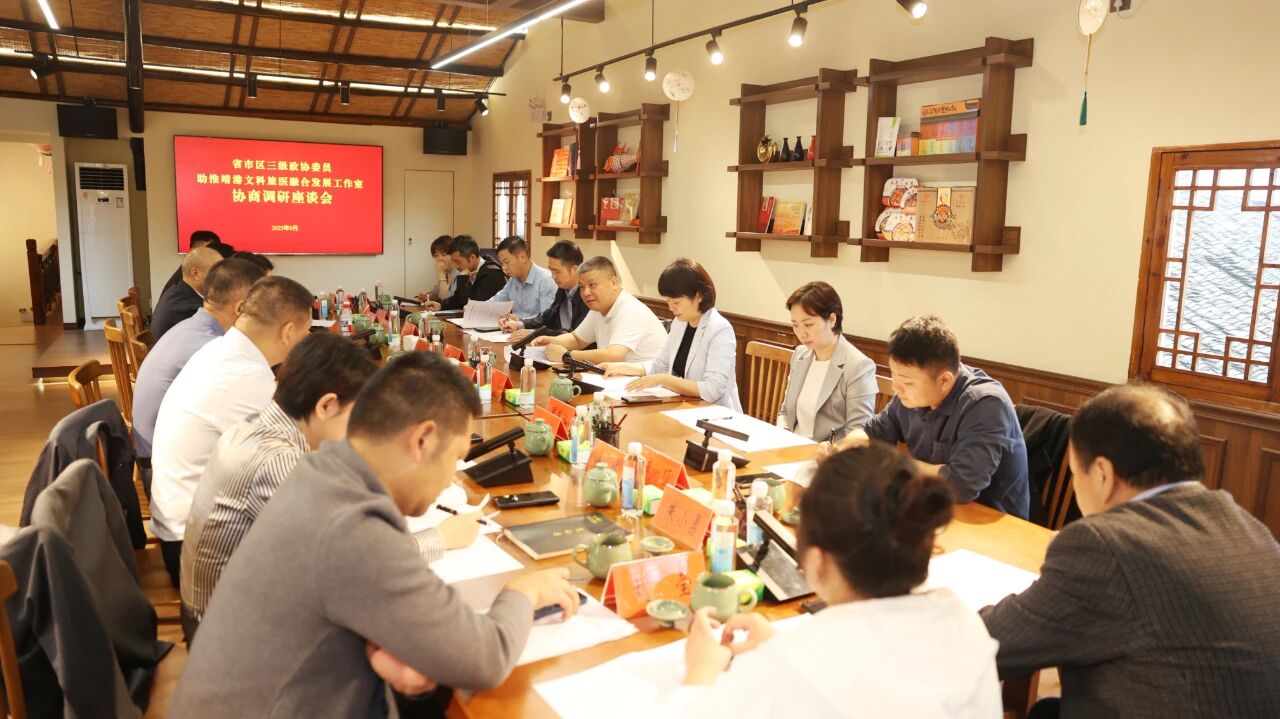 9月25日,省市区三级政协委员助推靖港文科旅医融合发展工作室开展协商调研并举行座谈,市政协主席陈刚,副主席李舜,秘书长郑力虎,区领导陈旷、向章平参加。