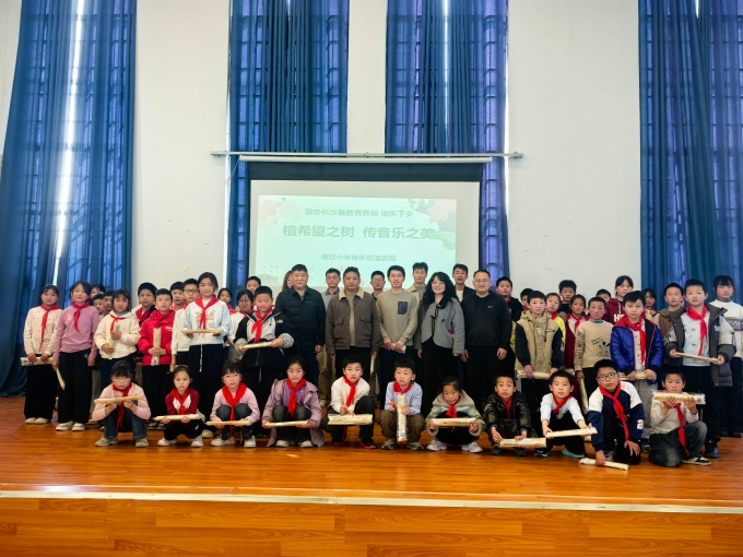 当前,乡村小学音乐教育是推进教育均衡的重要环节,部分乡村学校器乐教学资源不足,难以满足学生多样化艺术学习需求。长沙县政协教育界委员活动组立足履职为民、服务教育初心,聚焦乡村美育提质,主动发起竖笛捐赠公益行动,以实际行动助力乡村孩子点亮音乐梦想。本次活动既是落实国家“每生掌握1—2项艺术专项特长”要求的具体实践,也是政协委员下沉基层、服务乡村教育的务实举措,旨在以音乐为桥,让美育之花绽放在乡村校园。