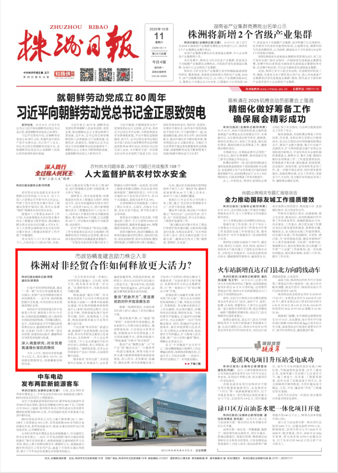 打造中非经贸株洲陆港,建设“一带一路”对非合作战略重要支点城市,发挥产业优势精准对接非洲发展需求……近年来,株洲积极把握历史机遇,对非经贸往来呈现强劲增长态势。