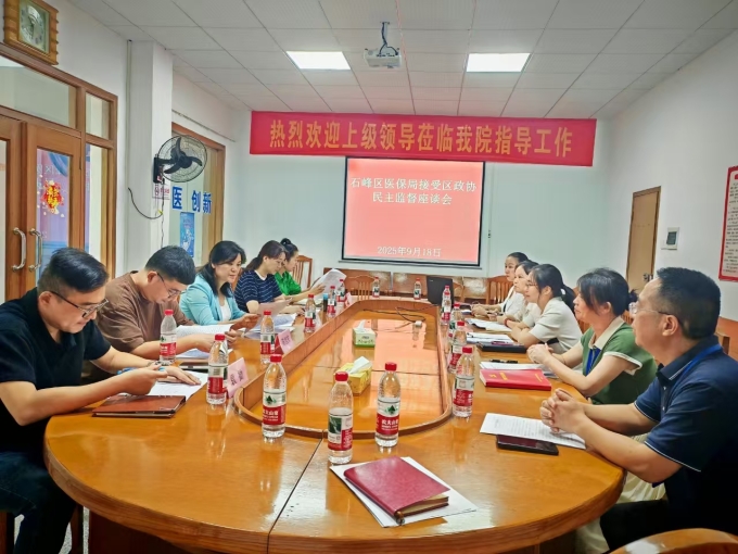 在随后召开的座谈会上,区医保局党组书记陈哲从医保参保提质扩面、经办服务优质高效、基金监管严密有力等方面,详细汇报了石峰区医保工作开展情况。2025年以来,石峰区医保局持续推进DRG付费方式改革,实现辖区10家开展住院业务的定点医疗机构DRG支付结算全覆盖;推广医保移动支付,辖区6家二级及以上医疗机构、2家基层医疗机构开通移动支付;在异地就医直接结算方面,全区7家二级及以上医疗机构实现住院、普通门诊、门诊慢特病异地就医直接结算全覆盖,8家基层医疗机构实现43个门诊慢特病治疗费用省内异地直接结算全覆盖。同时,也客观分析了当前DRG支付推广、医保移动支付普及、基金监管等方面存在的问题,并提出了下阶段工作打算。