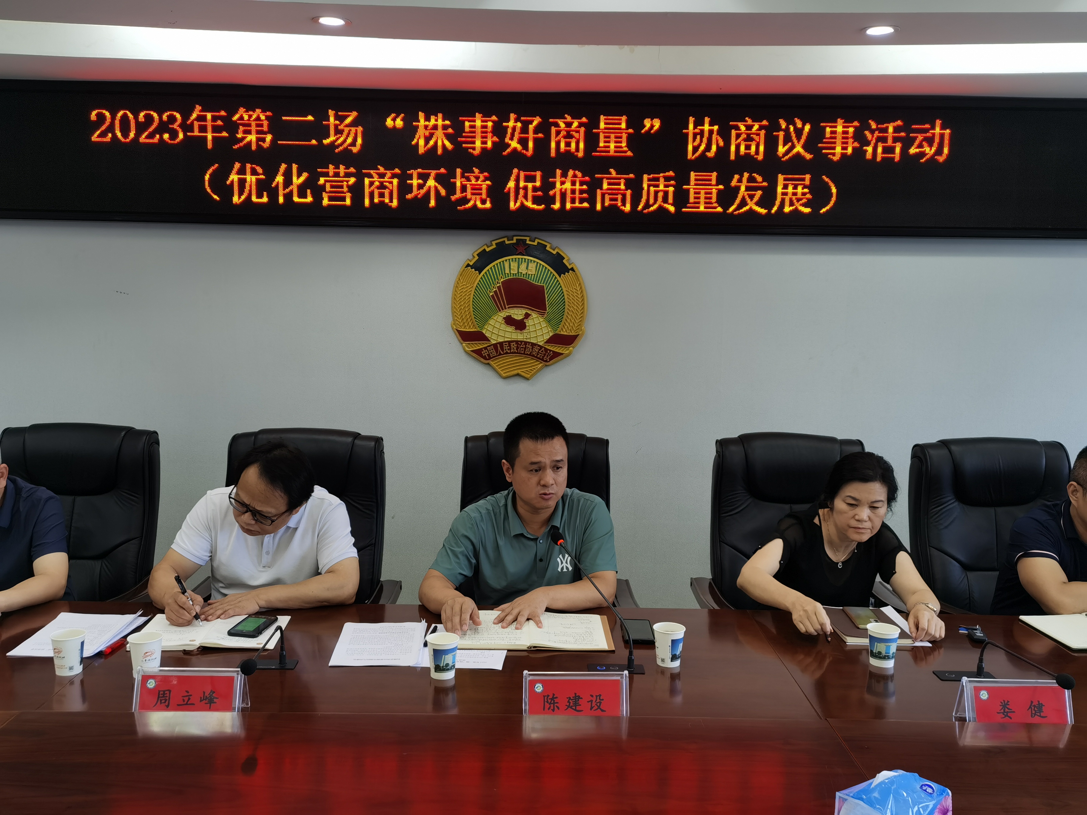 会上,区政府副区长陈建设表示,此次“株事好商量”协商议事活动的选题切合实际,旨在为我区经济发展建言献策。他要求各相关部门充分运用协商成果,进一步提升我区营商环境品质。同时,也希望区政协和区政协委员们多提宝贵意见和建议,支持我区的营商环境工作。