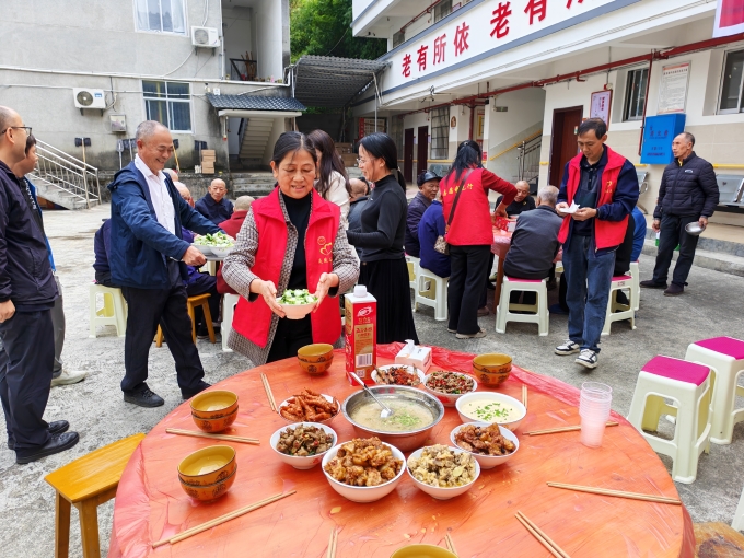 “很开心,有你们陪我们过节。”10月29日,炎陵县水口中心敬老院,鱼片志愿者政协委员工作室驻室委员和志愿者们一道,将募集的冬衣、洗发水等生活物资赠送给这里的老人,陪老人们玩趣味游戏,吃团圆饭,老人们笑容满面。当天,他们还为县城四个社区的21户孤寡老人、残疾老人、抗战老兵送上手工饺子,送去节日的问候。