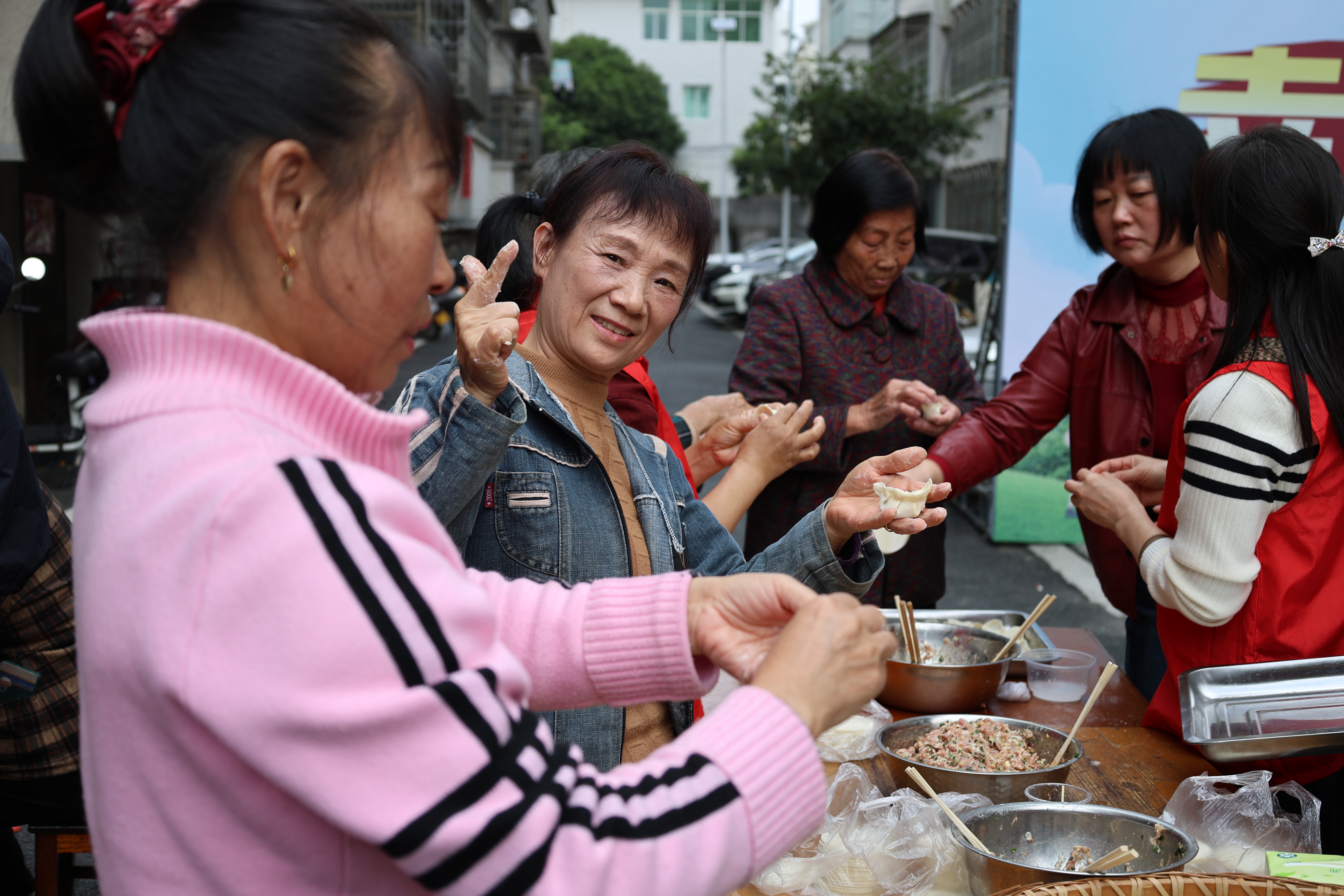 “看我包的饺子,好有型!”在发电小区,委员们与社区工作人员一道,与小区居民一同包饺子,在欢声笑语中感受重阳的温暖。
