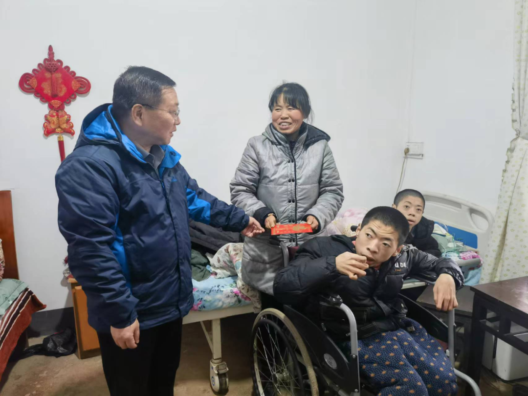 下午,周长林来到岳塘区板塘街道西塘村“双残”家庭郭利群家中,先后了解其孩子健康状况及家中物资储备情况,并送上慰问物资。