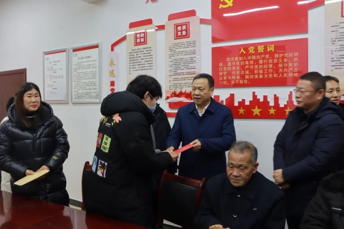 “感谢您为保家卫国作出的贡献,新春佳节即将来临,祝您身体健康、新春快乐。”在团田村,杨真平看望了困难党员、退伍军人周希党。周希党握着杨真平的手,感激组织的关怀。“今年多大了?身体怎么样?”今年22岁的黄展维患有白血病,为了给他治病,家里花费的医疗费用超过80万。杨真平鼓励他,坚定信心,乐观、勇敢地面对生活。今年40多岁的刘胜明患有肢体残疾,妻子儿子因意外过世,自己无劳动能力,目前吃低保。杨真平详细询问他的身体和生活情况,给他送上慰问金和新春祝福。杨真平还慰问了77岁的老党员周淑春、杨林乡机关困难职工冷雨香,给他们送去了组织的温暖。