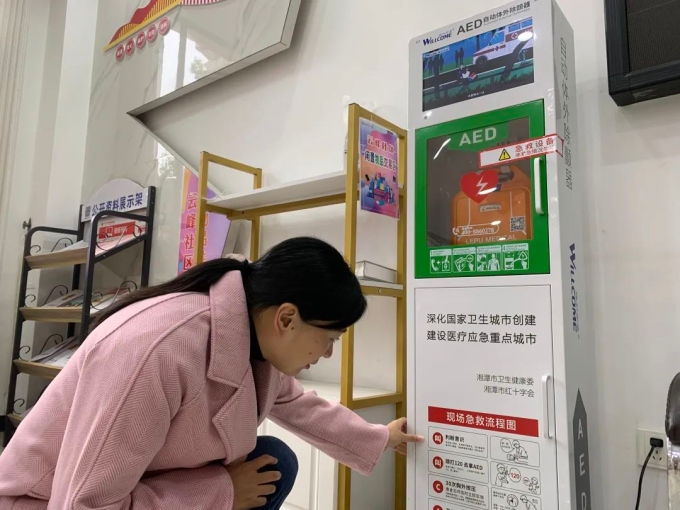 “市卫健委办理提案的效率杠杠的。”3月6日,在岳塘区宝塔街道云峰社区东方名苑物业办公大楼的一楼大厅内,市政协委员羊柳指着刚刚投入使用的AED(自动体外除颤器)紧急救护设备,忍不住称赞。