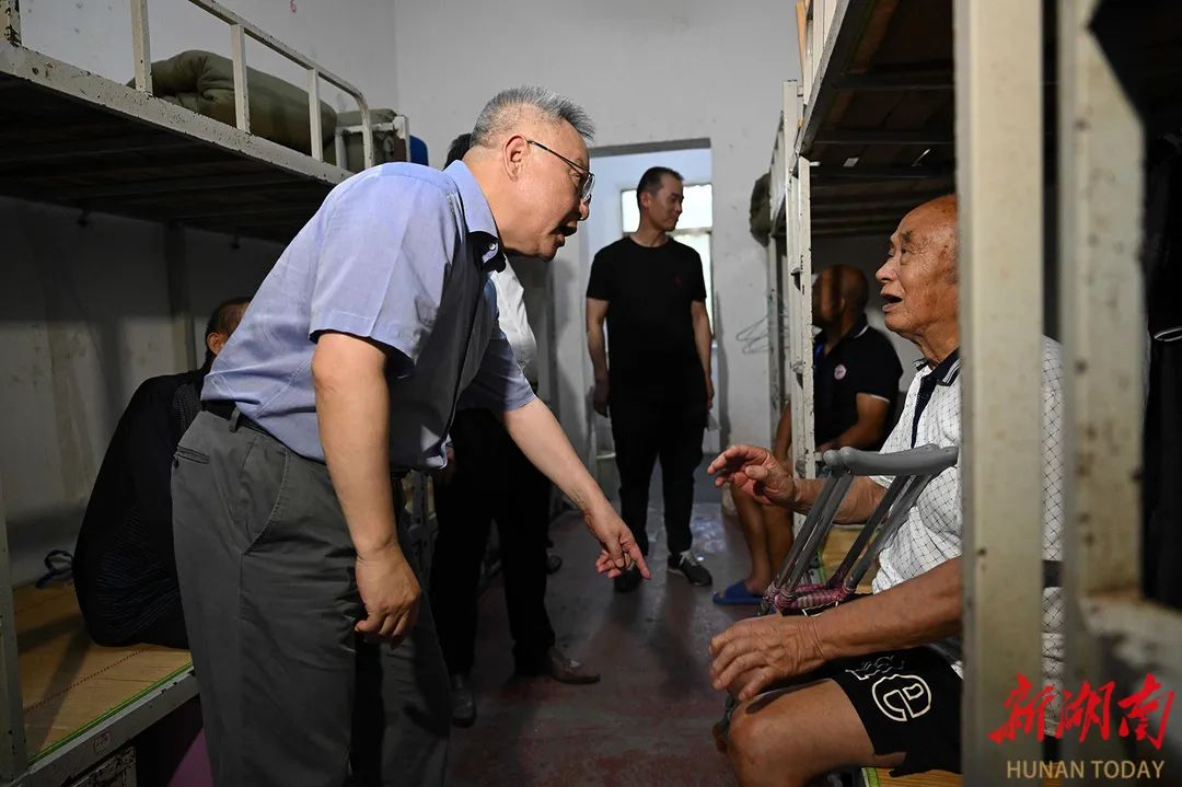 易俗河镇四新堤决口发生后,受影响的新塘村、新虎村3832人已全部转移,当地安排4所学校作为临时安置点。沈晓明来到河口中学察看医疗救助、便民服务、住宿条件和备餐情况等,询问受灾群众生活保障等情况,鼓励大家坚定信心、安心过渡,并要求属地党委、政府做好转移安置群众的服务保障工作。