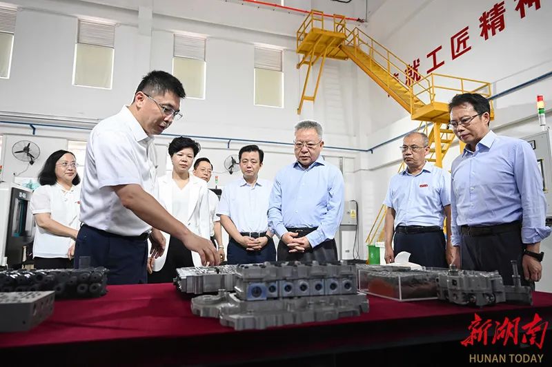 湘潭大学工程训练中心是集智能制造实验室、数控加工实验室、电工电子实训实验室等多个学科交叉于一体的科研教学平台。沈晓明走进该中心,详细了解资金投入、收益分配、科技成果转化等情况,鼓励学校瞄准“卡脖子”技术难题,打好关键核心技术攻坚战。