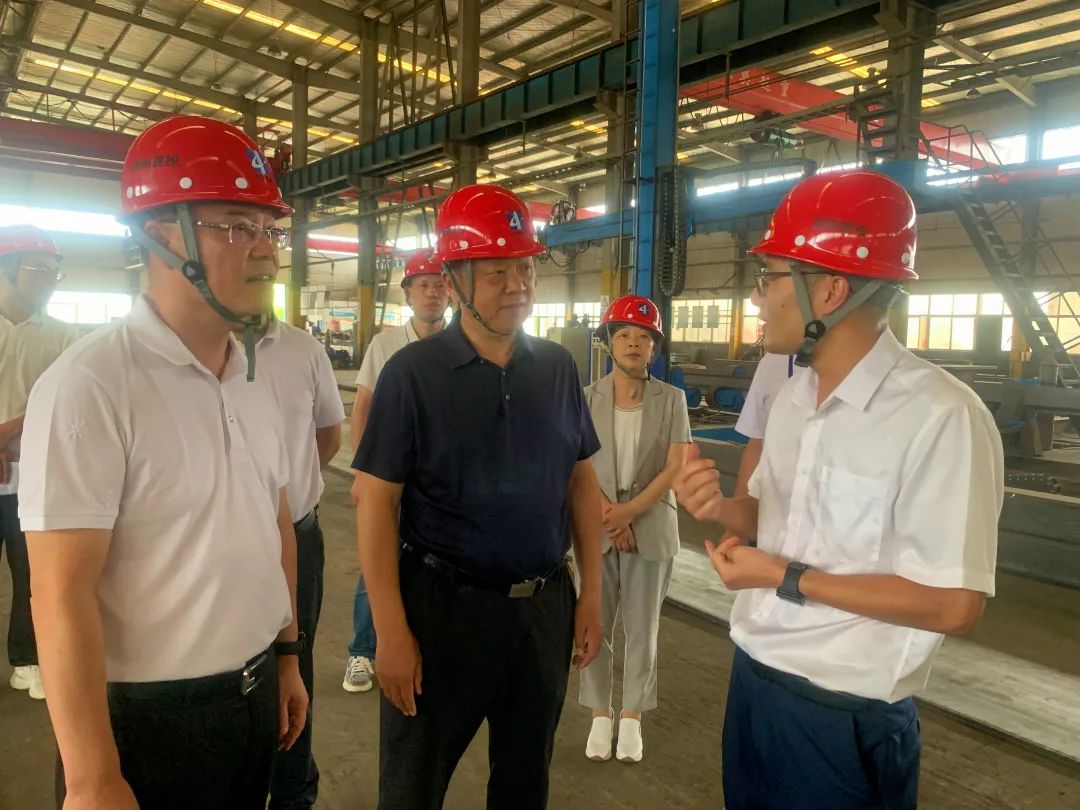 杨真平一行首先来到湖南省第三工程有限公司全资子公司湖南华韧钢结构工程有限公司。该公司成立于2001年,现有职工105人,拥有钢结构厂房 13000 余平方米,建有轻钢、重钢、箱型梁等生产线,年生产加工产能 1.2万吨,年生产施工能力约5亿元,能承担各类工业与民用建筑钢结构工程的制作与安装施工等。杨真平来到生产车间,了解企业生产经营、市场拓展等情况,为在生产一线挥洒汗水的企业职工送上防暑降温物资,并与他们亲切交谈。杨真平感谢企业和职工为湘潭发展做出的卓越贡献,并叮嘱大家在高温天气下工作,一定要注意劳逸结合,做好个人防护,确保自身安全和健康。
