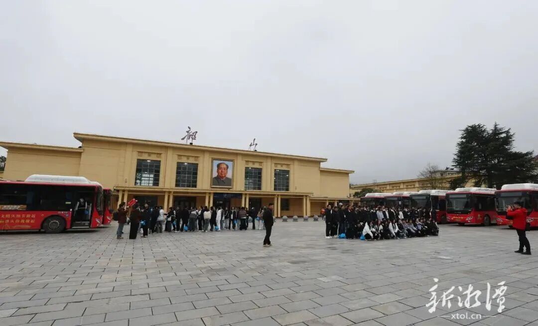 韶山火车站始建于1967年,伴随着韶山铁路通车同步运营,曾开行至长沙、北京、广州等地的旅客列车,累计为韶山输送人流超2000万人次,见证了韶山的发展变迁。2017年,因时代发展需求,车站暂停运营。2021年6月,随着韶山至井冈山红色旅游铁路专线开通,经过重新整修的韶山火车站恢复运营,保留原有暖黄色复古建筑风貌,主站房上端悬挂着毛主席油画画像,候车大厅内红色木长椅、《毛泽东去安源》《开国大典》等巨幅油画,既保留着老车站的怀旧气息,又兼具新时代文旅服务功能,获评县级文物保护单位的它,如今成为韶山新晋“网红”打卡点与红色教育打卡点。近年来,全力承接“我的韶山行”红色研学专列。据悉,2025年“我的韶山行”研学专列覆盖全省13个市州,设置48个始发车站,服务近30万师生奔赴韶山,2026年更是开行首趟“韶山行·银发研学专列”,吸引近800名银发旅客前来追寻红色记忆。