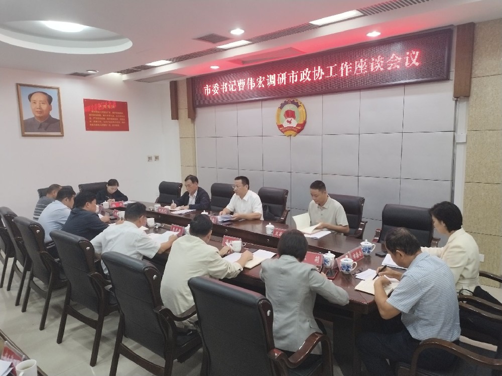 10月16日,市委书记曹伟宏主持召开专题座谈会,调研市政协工作开展情况。市政协主席李长新作工作汇报。曹伟宏强调,全市政协系统要始终聚焦中心、服务大局,继续发扬成绩、深耕品牌,不断凝聚人心、凝聚共识、凝聚力量,为韶山高质量发展贡献更多政协力量。