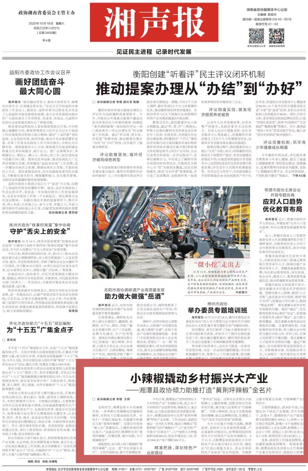 10月18日出版的湘声报将刊发题为《小辣椒撬动乡村振兴大产业 ——湘潭县政协倾力助推打造“黄荆坪辣椒”金名片》的文章,全文如下: