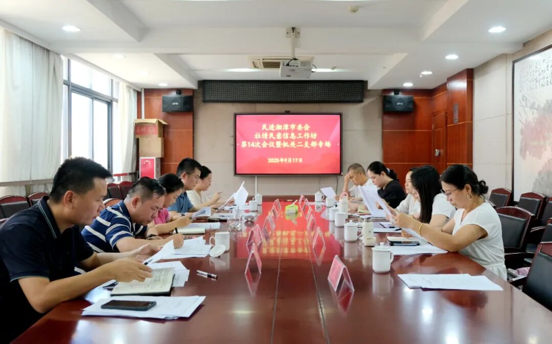 9月17日,民进湘潭市委会社情民意信息工作坊第14次会议暨民进湘潭市机关二支部专场举行。民进湘潭市委会专职副主委郭玲主持,市委统战部研究室主任杨志、市政协办公室宣传信息科科长晏钦、市统战事务中心副主任谭君玲及民进湘潭市机关二支部部分参政议政骨干等10余人参加。