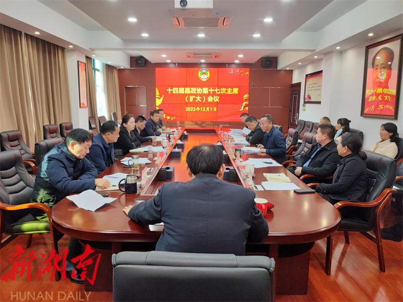 湖南日报·新湖南客户端12月1日讯(通讯员 周昱君)12月1日,岳阳县十四届县政协第十七次主席(扩大)会召开,县政协主席周里主持会议。县政协副主席刘卫兵、彭荣欣、张忠新、王敏,副主席提名人选敖珊等参加会议。