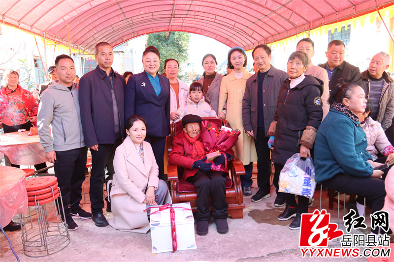 岳阳县融媒体中心1月15日讯(记者 张帆)1月13日,我县唯一健在的抗战老兵刘梓贤爷爷迎来了他的百岁生日。市政协副主席、民革岳阳市委会主委范泽容,民革岳阳市委第四支部及关爱抗战老兵的志愿者们到场为老人祝寿。