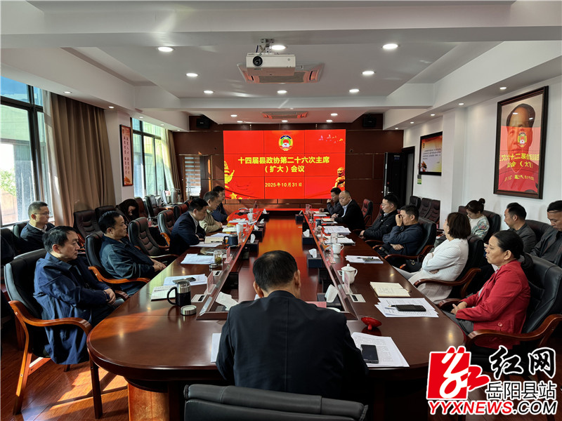 岳阳县融媒体中心10月31日讯(周昱君)10月31日,县政协党组书记、主席周里主持召开十四届县政协第二十六次主席(扩大)会。县政协副主席刘卫兵、彭荣欣、张忠新、敖珊出席,县政协机关干部职工参加。