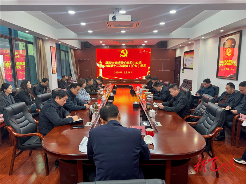 岳阳县融媒体中心12月25日讯(周昱君 巫筱婷)12月24日,县政协党组书记、主席周里主持召开县政协党组理论学习中心组2025年第十二次集体(扩大)学习暨县政协机关“书香政协”集中学习会。县政协副主席刘卫兵、张忠新、王敏、敖珊等参加。