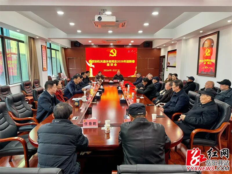 岳阳县融媒体中心1月28日讯(周昱君)1月27日,县政协机关退休老同志2026年迎新春座谈会召开,机关退休老同志欢聚一堂,共话发展,喜迎新春。县政协党组书记、主席周里,副主席刘卫兵、彭荣欣、张忠新、王敏出席。