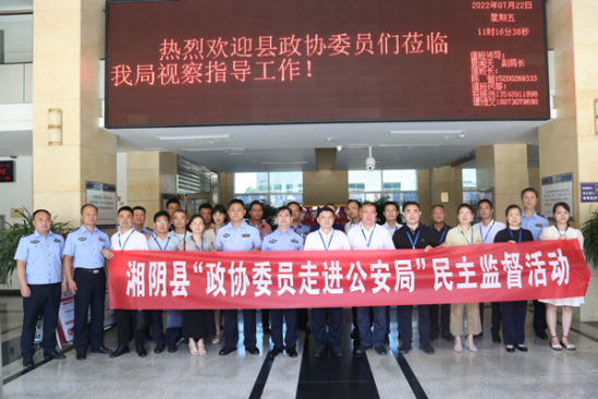 7月22日,县政协主席杨革新带领20余名政协委员走进公安局开展民主监督活动。县人民政府副县长、县公安局长刘志忠,县政协副主席黄新凯,县政协秘书长王献平参加。