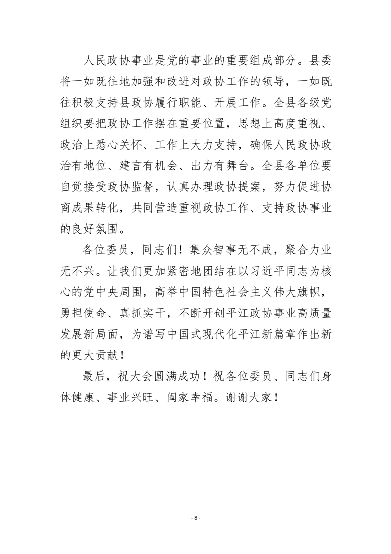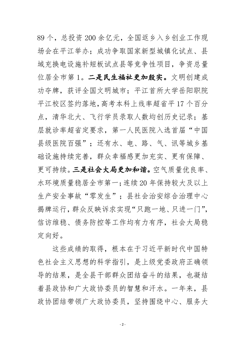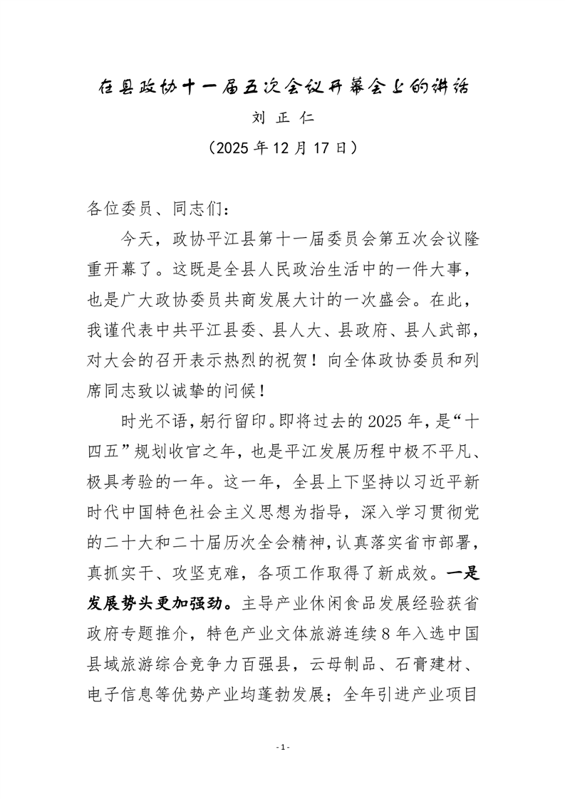 政协平江县委员会十一届五次会议大会资料