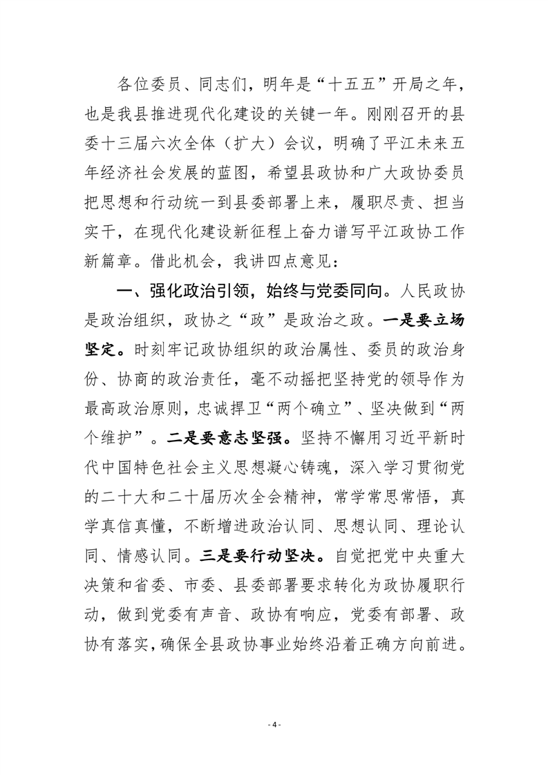政协平江县委员会十一届四次会议 会议指南