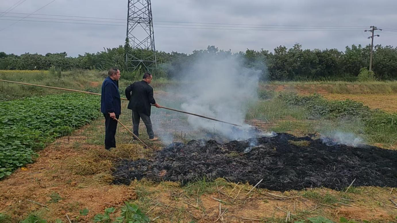(白塘镇政府秸秆禁烧巡查人员扑灭已燃烧的秸秆)