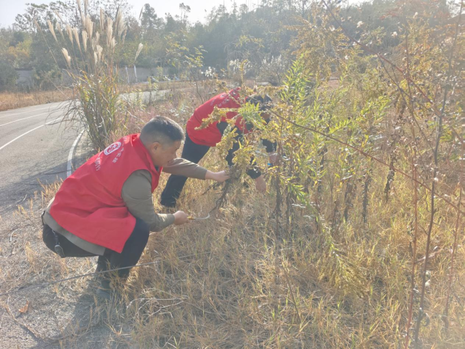 在开展物理清除的同时,大家注重强化源头防控与宣传引导。委员们结合排查工作,现场向周边村民发放宣传资料,详细介绍“加拿大一枝黄花”的形态特征、生态危害及防治知识,提升群众对外来入侵物种的辨识能力和防范意识,鼓励群众发现疑似植株及时上报,积极构建“群防群治、联防联控”的长效管理机制。