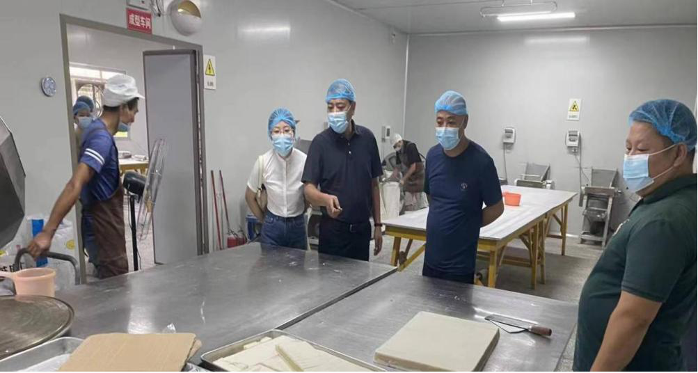 委员们通过实地调研了解了原材料的采购验收、运输、贮存,相关视频的加工和切配、烹调以及器具消毒保洁等工作。调研中,委员们了解到该公司目前急需解决生产用水的来源问题,立即对接镇自来水厂相关负责人,与其积极协商后,自来水厂决定免费为马复胜食品股份有限公司安装自来水管道,解决生产用水问题。