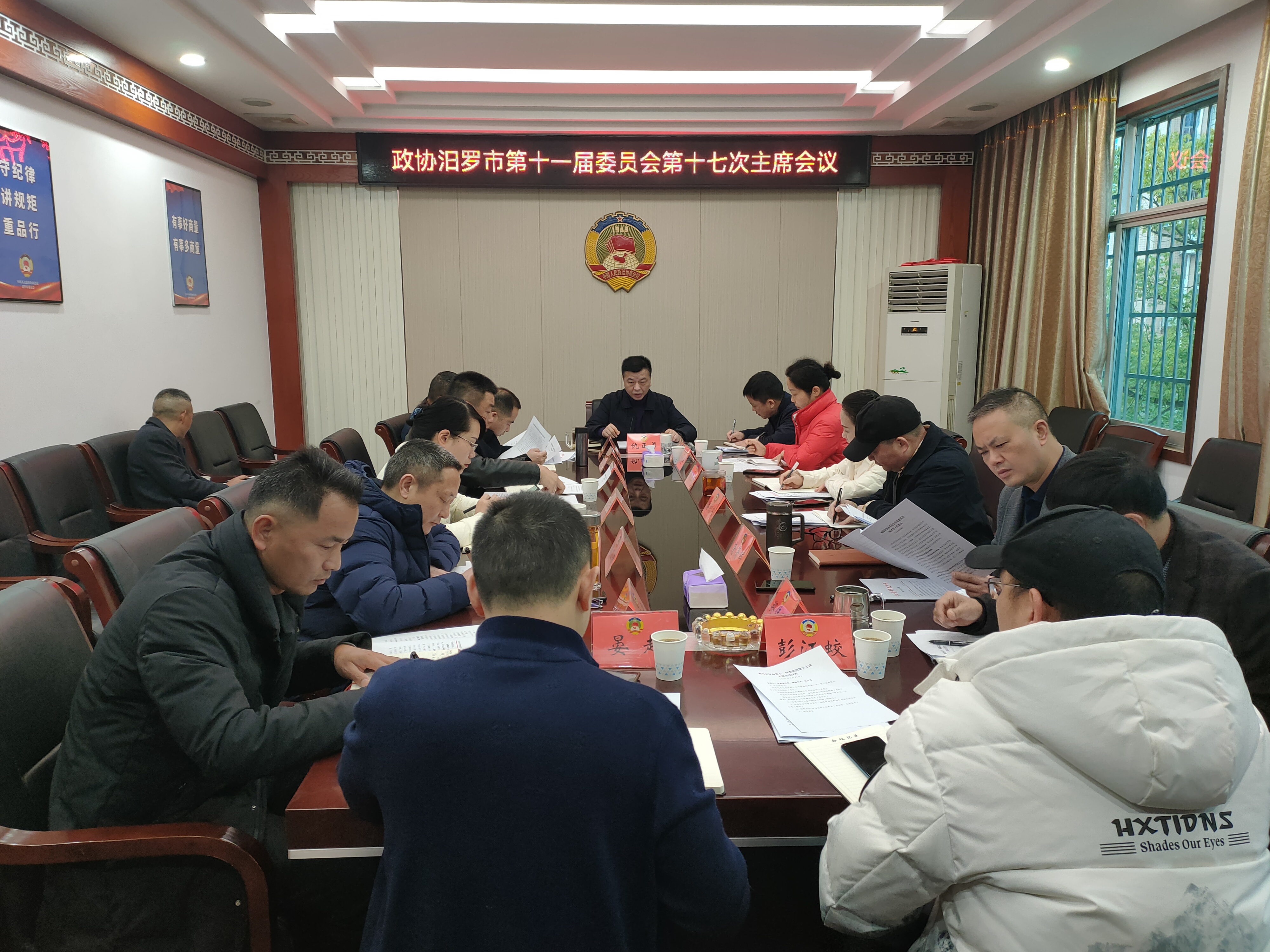 2月23日上午,政协汨罗市第十一届委员会第十七次主席会议召开。市政协主席、党组书记仇正勇主持会议,副主席陈岭华、黄永红、胥亮、张勇、周亚玲,秘书长李旺、各专委会主任及市纪委监委驻市政协机关纪检监察组组长晏超参加会议。