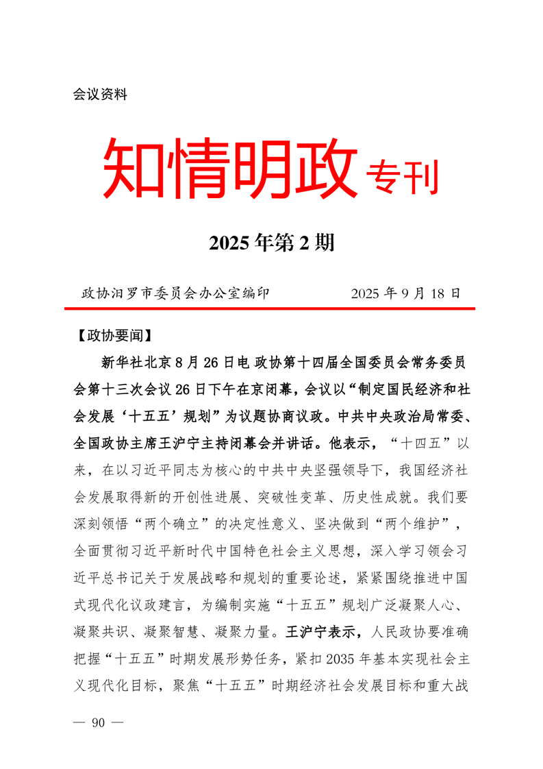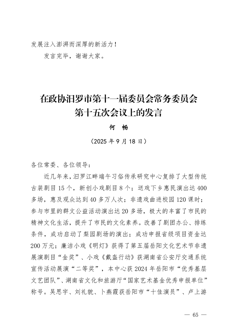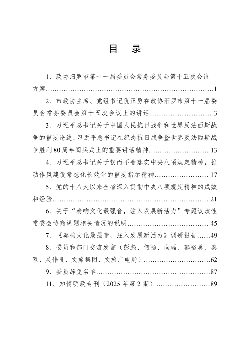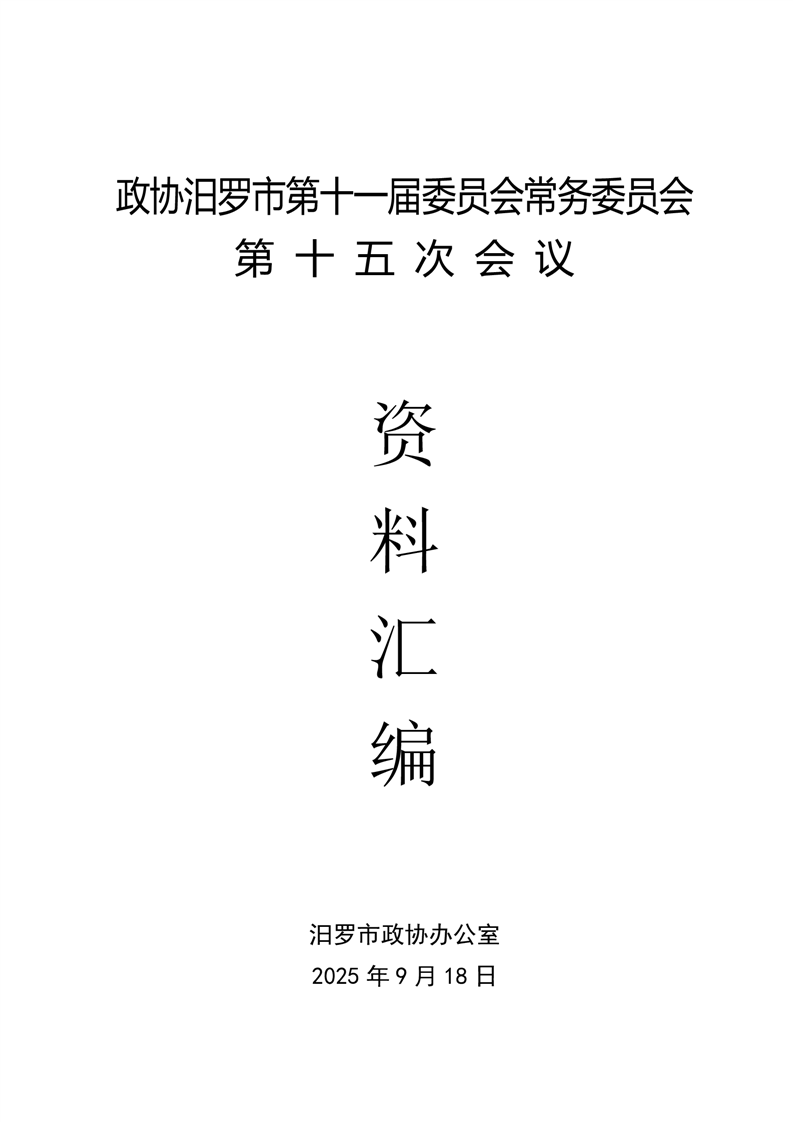 政协汨罗市第十一届委员会常务委员会第十次会议资料汇编