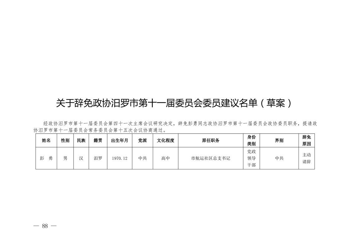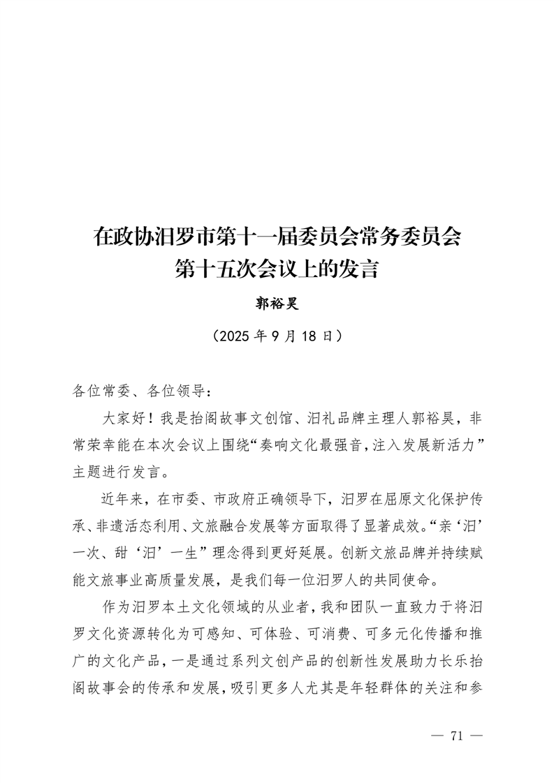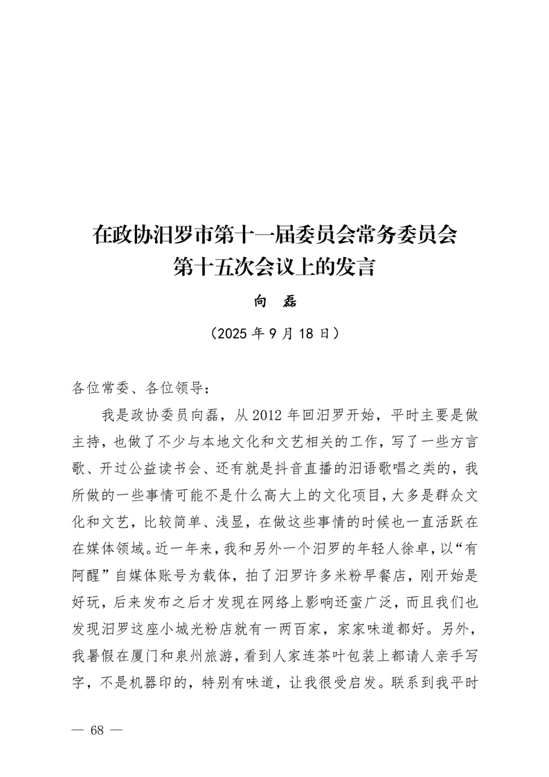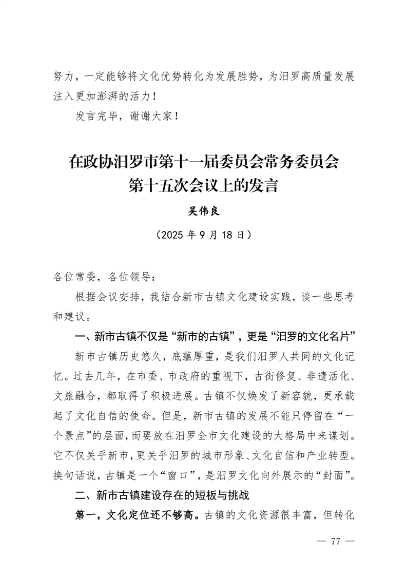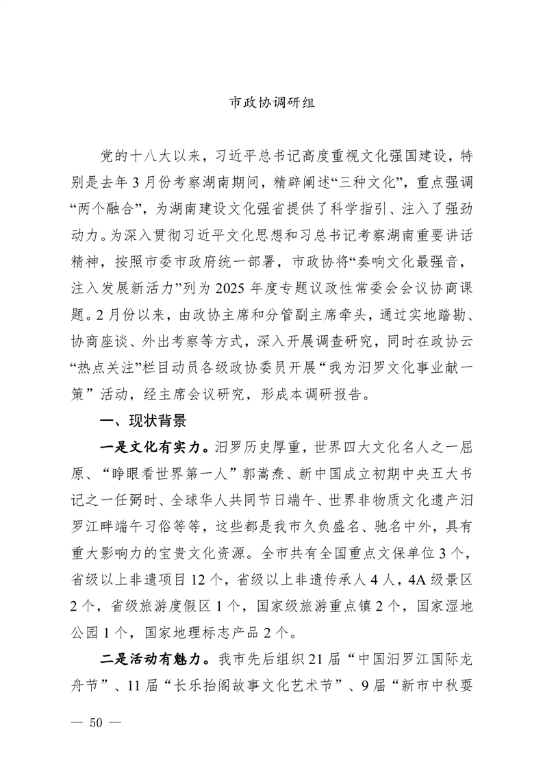 政协汨罗市第十一届委员会常务委员会第十次会议资料汇编