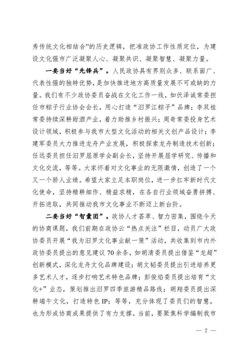 4.30在汨罗市政协党组2025年第六次会议暨十一届三十八次主席会议上的讲话(仇..