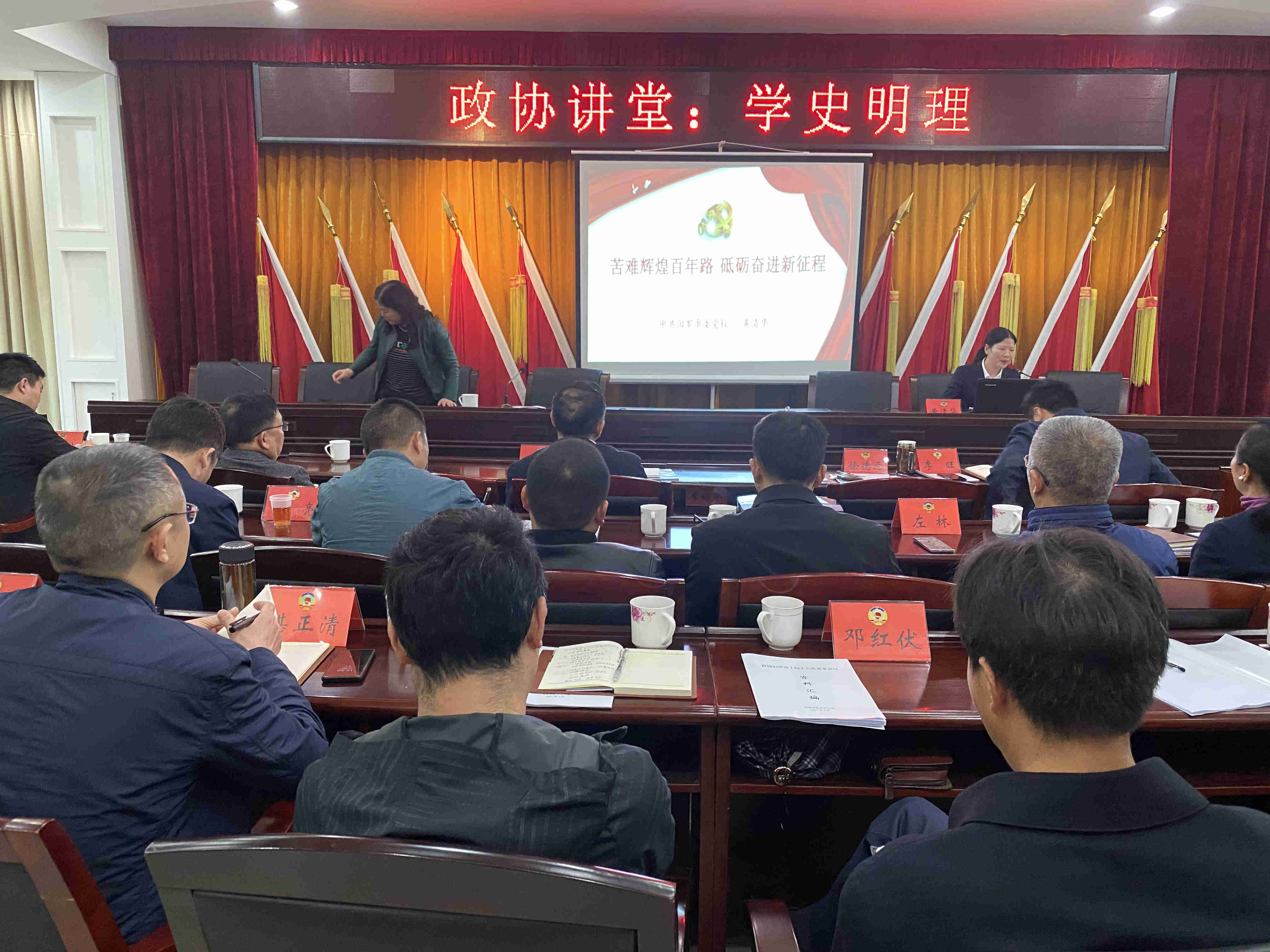 阳春三月,阴雨连绵,微风吹来,偶感阵阵寒意,然而市政协机关却火热异常,十分火爆,在这里,党史学习热情高涨,学教活动接连不断,仅三月份就开展学教活动7场次之多。接3月4日机关学习教育动员会议以来,先后于10日组织机关全体干部职工集中学习了《关于在全党开展党史学习教育的通知》,于15日组织主席会议参加人员学习了许达哲书记在全省党史学习教育动员大会上的讲话精神,于31日在十届十八次常委会上集中学习了习近平总书记在党史学习教育动员大会上的讲话精神,许达哲书记在全省党史学习教育动员会上的讲话精神。还于30日组织常委会议部分组成人员、机关干部职工收看了中央党史和文献研究院原院务委员陈晋的党史专题讲座--《看精神、看国家、看道路》,31日组织全体常委会议组成人员、机关干部职工听取了市委党校副校长、副教授黄清华讲授的《苦难辉煌百年路 砥砺奋进新征程》党史课。并于24日组织赴湘阴开展党史专题学教党日活动,瞻仰了烈士陵园,参观了陈毅安烈士纪念馆,寓学教于参观考察中。接二连三的学教活动,让机关干部大兴学习之风,真正做到学史明理、学史增信、学史崇德、学史力行,学党史、悟思想、办实事、开新局,使文化政协建设真正落到实处,文化政协品牌在学教中更加响亮。