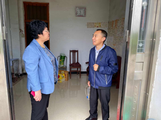 这是今年廖主席第六次来到结对贫困户张沈辉家中。走进张沈辉家中,之前老旧不堪的房子已经有了大变样,家中坑坑洼洼的地面已经都贴上瓷砖,屋内墙面也做了整修,看着十分明亮整洁。不一会,张沈辉就迎了出来,“廖姐,您来啦!”廖主席提着粽子等端午节物资,亲切地对张沈辉说:“近段时间身体还好吧?”“现在吃的药还有吗?”嘱咐到:“你身体抵抗力差,最近可千万不能感冒啦!现在党的政策现在这么好,你要多注意调养好身体,从事一些力所能及的劳动,现在的这些困难都是暂时的,只要坚定信心,勤劳肯做,生活会越来越好的!”