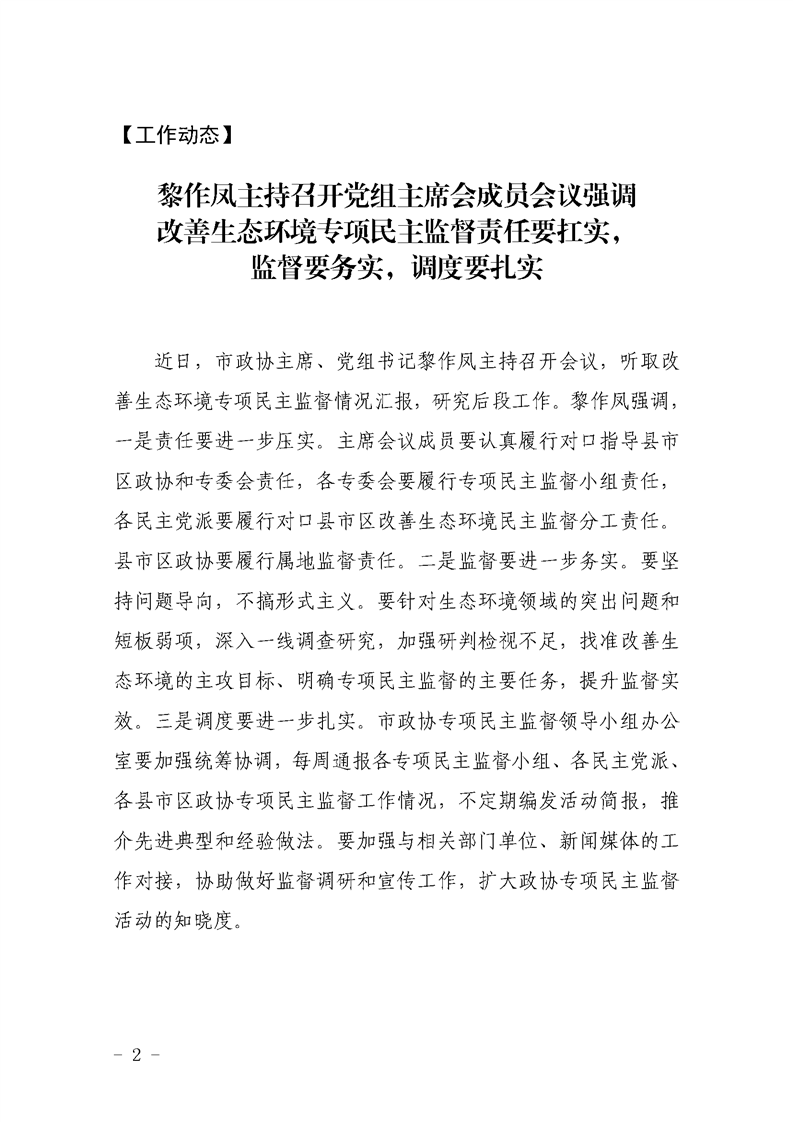 改善生态环境专项民主监督简报(第5期)