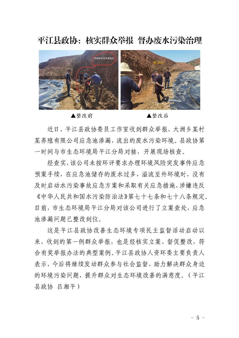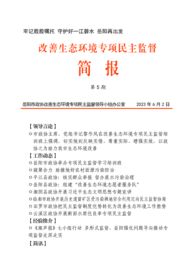 改善生态环境专项民主监督简报(第5期)