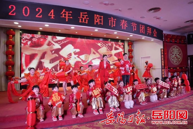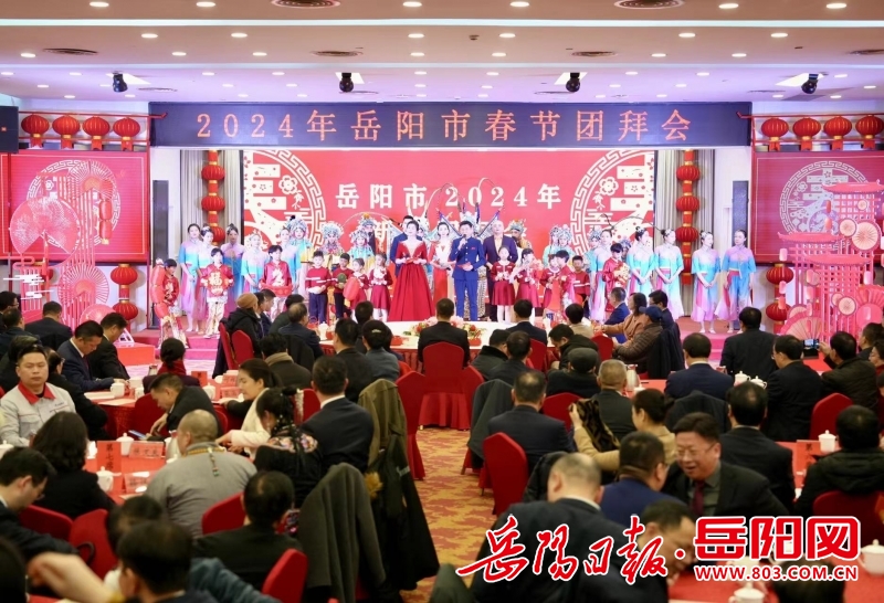 团拜会上,播放了岳阳市2023年工作宣传片,文艺工作者表演了节目。