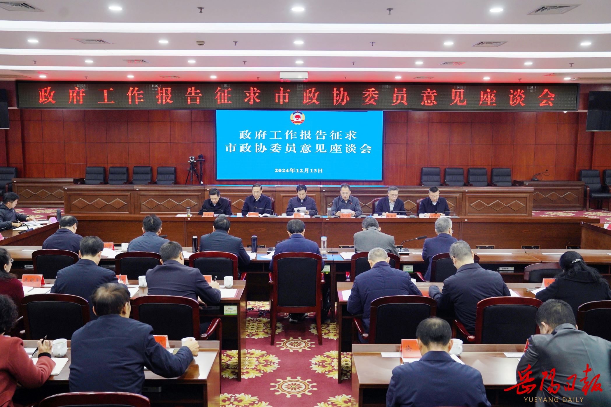 会上,市政府通报了2024年全市经济社会发展情况,就《政府工作报告(征求意见稿)》作了起草说明。曾伟、经虹、胡建兵、胡伟等来自各界别的政协委员充分肯定了全市经济社会发展取得的显著成绩,并立足市情和各自工作领域,围绕做强特色产业、优化营商环境、义务教育、重点民生实事、新质生产力培育等畅所欲言,贡献智慧和力量。在认真倾听大家的发言后,李挚代表市政府对市政协常委会及各位委员长期以来的关心帮助、倾力支持表示衷心感谢。他指出,大家的协商发言,议在关键处、商在点子上,站在全市中心工作的立场,发言极具价值,市政府将认真梳理、深入研究,最大限度将各方智慧和愿景吸收到报告里,使其转化为促进政府工作的务实举措。李挚强调,2025年是“十四五”规划收官之年,“十五五”规划谋篇布局之年,希望广大政协委员一如既往关心支持政府工作,多谋发展之计,多献民生之策,多行监督之举,汇聚磅礴力量,同心勇立潮头,携手推动全市高质量发展和现代化建设再上新台阶。市政府将继续主动接受政协民主监督,持续做好提案办理工作,全力为各级政协组织和广大政协委员开展工作、履行职能做好保障。黎作凤表示,市政协将始终与市委市政府站在一起、想在一起、干在一起,当好助推岳阳高质量发展的“拉拉队”,为岳阳发展和市委市政府的决策主张、中心工作鼓与呼、思与谋,为谱写“七个岳阳”新篇章贡献更多政协智慧和力量。市委常委、常务副市长李建华,市政协副主席秧励、刘铁健、李运帷、张赟,市政府秘书长孙志诚,市政协秘书长陈念军参加。