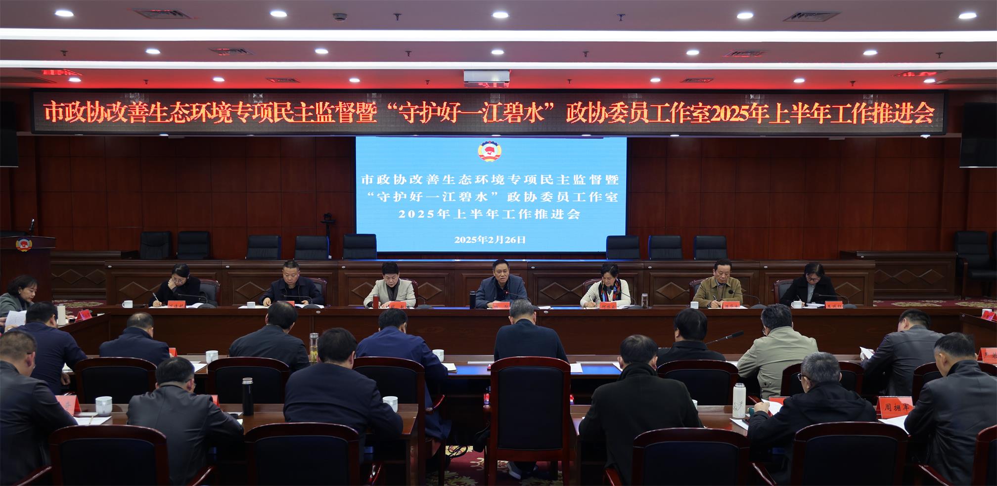 2 月 26 日,市政协召开改善生态环境专项民主监督暨“守护好一江碧水”政协委员工作室 2025 年上半年工作推进会。市政协副主席、党组副书记秧励出席并讲话,市政协副主席何祚云主持会议。各县市区政协分管副主席、人资环委主任、“守护好一江碧水”政协委员工作室党建指导员及召集人、市纪委监委驻市政协机关纪检监察组、市中级人民法院、市检察院、市生态环境局等相关负责人特邀参加。