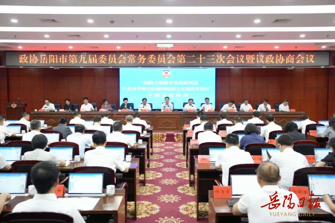 8月20日,九届市政协常委会召开第二十三次(扩大)会议,就“抢跑文旅融合发展新赛道 打造世界级岳阳楼洞庭湖文化旅游度假区”进行专题议政协商。省委副书记、岳阳市委书记谢卫江出席会议并强调,要深入学习贯彻习近平总书记关于旅游发展的重要论述和省委、省政府工作要求,强化成果运用,坚持同题共答,加快打造世界级岳阳楼洞庭湖文化旅游度假区。市政协主席、党组书记黎作凤主持。